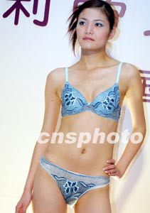 三月三十一日,在上海開幕的第八屆中國國際內(nèi)衣展上,國際知名內(nèi)衣品牌歐莉蒂克發(fā)布新款時尚內(nèi)衣。作者:湯彥俊