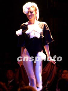 印度女學(xué)生瑞麗·古塔在北京今春國(guó)際青年時(shí)裝設(shè)計(jì)大賽上展示的的冬雪時(shí)裝,黑白色的靈感源于北歐挪威寒冷雪花覆蓋的樹(shù)林。作者:賈國(guó)榮