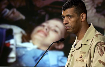 決定去找美國人報告此事之后,穆罕默德納步行了10多公里來到里耶東邊的大橋上,那里的美國大兵們正在確保大橋安全,保證補給車隊通過。他高舉著雙手向陸戰隊走去。一名陸戰隊員喝令:“你想干什么?”他回答說:“我有有關女兵在醫院里的重要情報。”這是要冒風險的,因為由于屢屢遭襲擊,加上伊軍常裝著平民服裝,所以他可能被美軍打死。但由于他提到了美國女兵,立即引起了陸戰隊員的注意。他很快被帶到軍官面前談話。與此同時,穆罕默德的家人已躲了起來,果然,當晚就有敢死隊員到他家搜查。