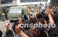 大殮儀式結束后,以全白花朵裝飾的靈車載著張國榮的靈柩駛離殯儀館,往哥連臣角火葬場火化。聚集在殯儀館門外的歌影迷揮手與偶像道別,讓他的倩影、歌聲永留心里。