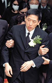 “哥哥”的告別儀式十分短暫,約十分鐘左右便完成,所有親友均按習俗以碌柚葉水洗手,各領一封英雄利是及“哥哥”的紀念卡。只見“唐唐”悲慟得全身軟弱無力,不能走路,要由兩個人攙扶,不停望著“哥哥”的照片若有所思并念念有詞。圍觀的歌迷更向他說:“‘唐唐’,振作些!”