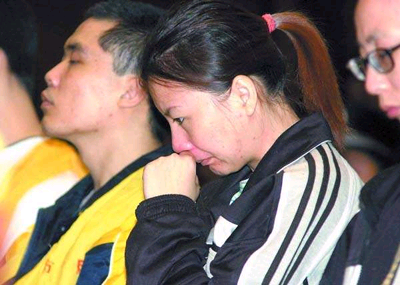 陳惠英穿著一套灰白相間的運動服,一條馬尾辮染成黃色,顯得十分時尚。她是麥國慶的妻子,今年才31歲,年輕的面容上帶著幾分憔悴。被押進法庭時,她的腳步遲緩,怯生生地向旁聽席張望。
