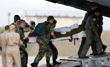 12日,美軍19歲女兵杰西卡·林奇經過駐德國美軍基地醫(yī)院的治療,今天乘美軍機從德國美軍基地返回美國。