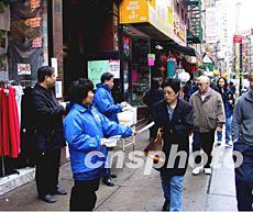 紐約僑界于當?shù)貢r間十二日在華埠派發(fā)預防非典型肺炎的中文說明。目前紐約被懷疑可能是非典型肺炎的病例有八起,華埠沒有發(fā)現(xiàn)病例。作者:趙海燕