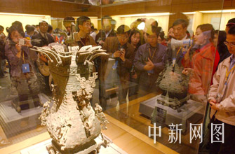 “網上看河南”采風活動中,各路媒體記者參訪河南博物院。慎重 攝