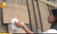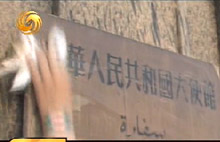 中國駐伊拉克大使館遭到暴徒兩度搶掠一空,香港鳳凰衛視女記者隗靜星期二(15日)到大使館內,看到劫后的使館滿目瘡痍。隗靜已將兩面遭掠后留在地面上的中國國旗收好,準備轉交給中國外交部,她更用僅有的半瓶礦泉水,將大使館門前的黃銅門牌擦拭干凈。