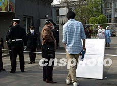 北京人民醫院二十四日上午作為首批受非典性肺炎污染的醫院,成為首批被隔離的區域。作者:滿會喬