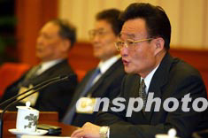 第十屆全國人大常委會四月二十五日在北京人民大會堂舉行首次法制講座,由楊景宇委員講解中國的立法體制、法律體系和立法原則。作者:毛建軍