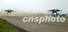 中國海軍航空兵威猛“飛豹”雙機起飛.作者:張全躍