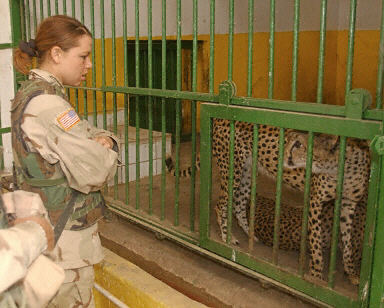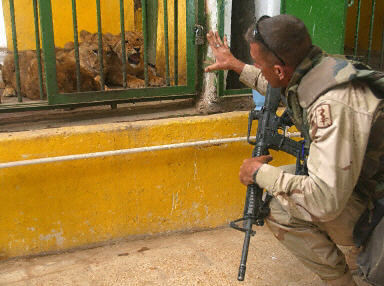 曾經(jīng)屬于烏代私人所有的七只獅子,兩只印度豹和兩條狗在美軍進(jìn)入巴格達(dá)后,被放入伊拉克公園飼養(yǎng)。