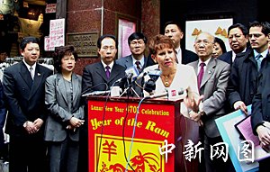 讓蔡老板開心的是今天舉行的新張儀式,聯(lián)邦參議員希拉里·克林頓成為小店新張儀式的主禮嘉賓。今天上午,希拉里與華埠人士在“絲路”咖啡屋探討振興華埠議題,在持續(xù)了數(shù)十分鐘的討論和記者會(huì)后,希拉里走到門口,拿起剪刀為咖啡屋開幕剪彩。一時(shí)間鑼鼓喧天、獅舞人笑,給冷清多日的華埠帶來(lái)了喜氣。