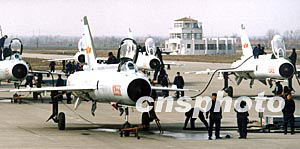駐守黃海地區的海軍航空兵殲擊機部隊,在春季超低空攻擊與截擊訓練中,戰機編隊快速加油提高戰斗力。汪漢宗 攝