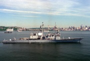 4艘“紀德”艦將取代臺軍7艘50余歲高齡的“武進”三號導彈驅逐艦,以填補所謂“2005年兩岸軍力失衡”。據稱,“紀德”艦的“戰斗系統”經美方評估,防空和反潛“威力強大”,且每年可節省3億元新臺幣的維持費,總人力需要也降低。