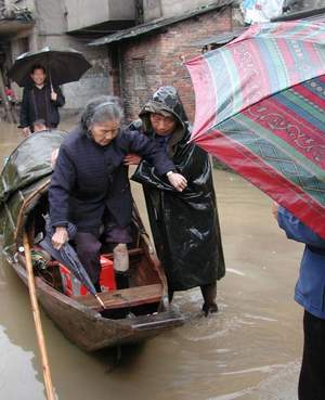 受冷空氣和西南暖濕氣流的影響,邵陽(yáng)連日來(lái)普降大雨。17日早晨7時(shí),資江洪峰經(jīng)過(guò)邵陽(yáng)市區(qū),峰頂達(dá)216.29米,超過(guò)警戒水位2.29米,最大流量5500立方米每秒,最大流速2.33米每秒。市區(qū)的泥灣地段和邵水橋下的街道等低洼地區(qū)都進(jìn)了水。