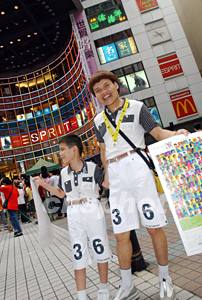 名歌星容祖兒、梁漢文及何韻詩18日在世貿中心為購買門票支持善舉的歌迷簽名。