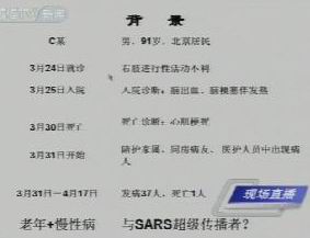 專家根據一個非典病人病例進行分析指出,根據病人背景資料顯示,該病人是一位超級非典傳播者,該病人發病初期由于年齡過高并伴有其他病癥,故其非典病癥被忽略。由此也說明老年人如感染非典更容易成為病毒傳播者。