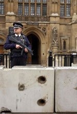 中新網(wǎng)5月24日電 據(jù)英國《泰晤士報》報道,為了避免倫敦市尤其是英國國會大廈遭受恐怖分子的襲擊,倫敦市日前全面加強了警戒措施。一夜之間,英國國會大廈的門口道路已經(jīng)豎起了一道水泥城墻。倫敦市警方也全面提高了整個倫敦市的安全戒備級別。