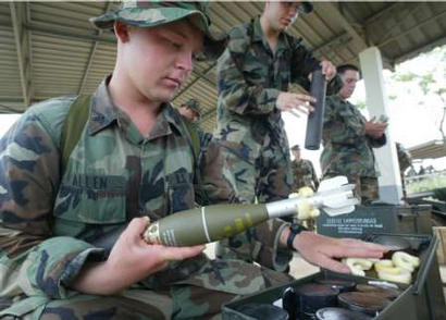 (三)向其盟國(guó)展示武器裝備,為美國(guó)軍火商推銷武器做廣告。如果說(shuō),戰(zhàn)場(chǎng)是美國(guó)軍火商最大的武器推銷場(chǎng),那么,演習(xí)場(chǎng)就是美國(guó)軍火商的第二大武器推銷場(chǎng)。海灣戰(zhàn)爭(zhēng)讓美國(guó)軍火商掙足了鈔票,科索沃戰(zhàn)爭(zhēng)又讓美國(guó)軍火商們大撈了一把,戰(zhàn)爭(zhēng)已經(jīng)成為美國(guó)兜售武器的最佳時(shí)機(jī),這似乎已成為美國(guó)屢試不爽的法寶。然而,在沒(méi)有戰(zhàn)爭(zhēng)的和平時(shí)期,演習(xí)場(chǎng)就成了美國(guó)最好的武器推銷場(chǎng)。近幾年,亞太一些國(guó)家為實(shí)現(xiàn)軍隊(duì)現(xiàn)代化投入了巨資,這樣一個(gè)難得的軍火出售機(jī)會(huì),美國(guó)是絕不會(huì)放過(guò)的。通過(guò)“金色眼鏡蛇”演習(xí)美國(guó)將向其盟國(guó)展示其武器裝備的優(yōu)越性能,以引起這些國(guó)家的濃厚興趣,為美國(guó)軍火商在亞太軍火市場(chǎng)占有更大的份額打下基礎(chǔ)。(聞新芳)