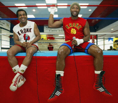 北京時間5月30日凌晨,英國拳王劉易斯為備戰(zhàn)與約翰迅的WBC重量級拳王爭霸賽,在賓西法尼亞進行訓(xùn)練。圖為劉易斯訓(xùn)練前接受采訪。