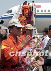 五月三十日,赴阿爾及利亞進行地震救援的中國國際救援隊圓滿完成各項任務后乘包機回到北京。中新社記者:張煒
