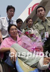 組圖:在阿地震中受傷的中國(guó)公民回到北京