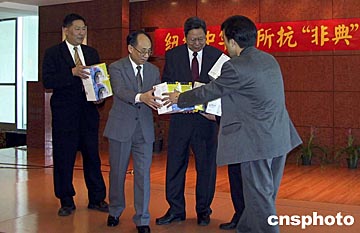 中新社紐約五月三十日電(記者趙海燕)主要由旅美臺灣同胞組成的傳統僑團中華公所三十日上午將一萬五千只口罩送到中國駐紐約總領館,以此表達對祖國大陸抗擊“非典”的支持。