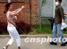 北京一位母親六月三日上午早早等候在小湯山戰(zhàn)地醫(yī)院門前,終于盼到患“非典”住院一個(gè)多月的兒子痊愈出院,母子迎面相見喜上心頭。中新社記者:賈國榮