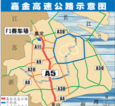 上海嘉金高速公路發展有限公司董事長張榮坤表示,為配合國際汽車城F1賽車場的建設,工程指揮部將采取進一步的技術措施和加快建設速度,一期工程(嘉定至北青公路)將提前于明年九月建成通車,以確保F1國際賽車大賽順利進行;整個工程將于二00五年底全線建成通車。
