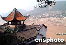 中新網6月9日電 中廣網消息:今天(6月9日)三峽工程正式蓄水進入第九天,上午八點,重慶庫區巫山水位達到130·76米,張飛廟正式進水,遺址前“大江保障”、“浩氣長存”兩幅摩巖題刻已經沉入江中。與張飛廟隔江相望、有著1400多年歷史的云陽老縣城也正被江水攬入懷抱,三點五公里長的環城路已全部沉入江底。