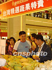 “臺灣美食節2003”六月十三日在香港開幕,此次美食節云集臺灣新鮮蔬果、乾貨食品、飲料及冷凍食品等二百多種,吸引眾多香港市民前往選購。潘索菲 攝