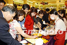 “臺灣美食節2003”六月十三日在香港開幕,二百多種臺灣美食美輪美奐,吸引嘉賓和市民競相品嘗。潘索菲 攝