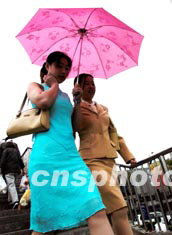青春靚麗的北京姑娘在淅淅瀝瀝的小雨中到商業(yè)街購物。中新社記者:鄒憲