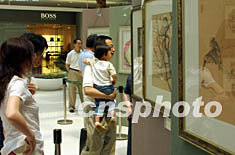 年過八旬的國畫大師程十發先生,十五日在上海恒隆廣場舉行“桃李情·程十發師生藝術畫展”,吸引眾多上海市民前往參觀。作者:湯彥俊