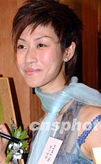 曾獲香港國際親善小姐稱號的殷莉,六月十四日出席在香港舉行的「龍的心、共抗炎,李小龍慈善珍藏電話卡公開發行」活動。錢興強 攝