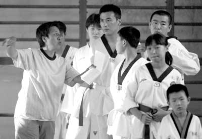 柳云龍扮演皇城根腳下的一個玩世不恭的小青年楊瑞。這場戲是楊瑞在哥們兒劉明浩的“勾引”下到跆拳道館來“泡妞”——安心。現場,換好了行頭的柳云龍還真有點“高手”的樣子,動作到不到位先放在一邊,柳云龍說:“導演說了,我這個角色本來就來這里泡妞的,動作別練得太好,不然就不像楊瑞了。”