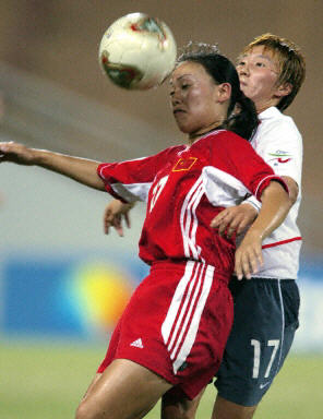 在十九日晚間于曼谷進行的一場女足亞洲杯的半決賽中,憑借著白潔的梅開二度和孫雯的錦上添花,中國女足以三比一力克韓國隊,順利進軍決賽。