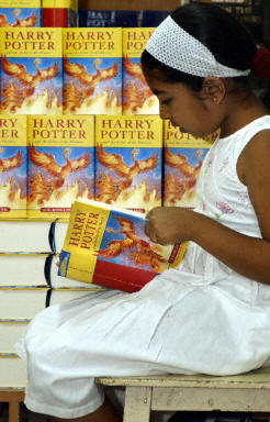 中新網6月21日電 在全球書迷的引頸期盼下,風靡世界的暢銷兒童讀物《哈利·波特》系列第五集《哈利·波特和鳳凰的指令》,終于在格林尼治時間20日23時(北京時間21日上午7時)全球同步發行。
