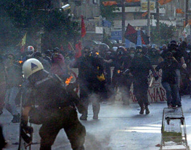 據(jù)報道,當天下午,大約25000名反資本主義的和平人士在薩洛尼卡市舉行游行示威活動,包括200多名自稱反政府主義者。