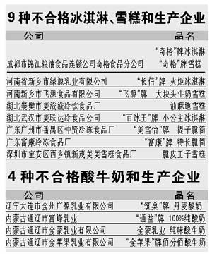 中新網6月23日電 北京娛樂信報今天引述中央電視臺的消息稱,國家質檢總局昨天公布冰淇淋、雪糕、酸牛奶質量抽查結果:冰淇淋和雪糕的抽樣合格率是71.1%,酸牛奶抽樣合格率為84.1%。