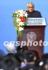 正在北京進行訪問的印度總理瓦杰帕伊二十三日在北京大學舉行演講。中新社記者:鄭萍萍