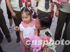 圖為小侄女迎接“抗非”姑姑的歸來 。