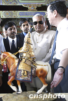 “這是很值得參觀的地方,”瓦杰帕伊說。二十四年前,時任印度外長的瓦杰帕伊第一次訪問中國時曾到過故宮。今天,再次來到這里,瓦杰帕伊已是滿頭白發(fā)。