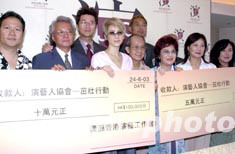 歌星梅艷芳6月24日在香港出席香港演藝人協會「茁壯行動」茁壯善款支票送贈儀式,梅艷芳表示「茁壯行動」成立一個月,多謝各界對活動的支持。中新社記者 鄧慶樂