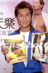 影視紅星古天樂6月27日在香港出席加盟Music Nation首張寫真AVCD發布會,古天樂影而優則唱進軍樂壇,早前遠赴太平洋塞班島拍寫真為配合新碟推出。中新社記者 鄧慶樂