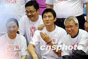 6月28日,香港著名藝人劉德華與漫畫家黃玉郎應邀出席擦亮香港大行動-“義”氣青年發動儀式,為百多名青年義工鼓勵打氣。作者:洪少葵