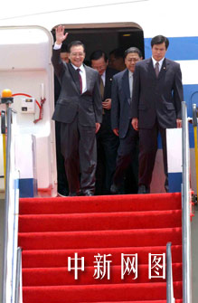上午十一時(shí)四十分許,溫家寶乘坐的專機(jī)平穩(wěn)降停香港國際機(jī)場。他微笑著走出艙門,向歡迎的人群揮手致意;在走下舷梯中途,他再度揮手。
