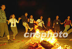 北京朝華科技公司周末組織員工和友好單位到郊區(qū)旅游,舉行篝火晚會,宣泄“非典”造成的心理郁悶。中新社記者 宋吉河 攝