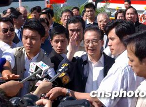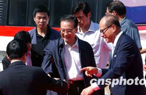 今天的葵涌碼頭一如往常一樣繁忙,人們為迎接溫家寶的到來,鋪上了紅地毯,擺上了鮮花,掛起了歡迎的條幅。香港長實集團主席李嘉誠及副主席李澤鉅到碼頭迎候溫家寶一行。