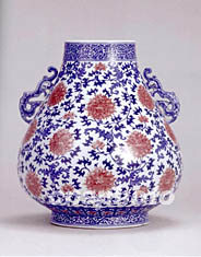 多件明清皇帝珍愛的瓷器將于七月中旬在北京華辰春季拍賣會上亮相。圖為尚無公開估價的清雍正青花釉里紅纏枝蓮紋螭耳尊,因工藝極難而珍罕,目前僅北京故宮舊藏一件。中新社記者 賈國榮 攝