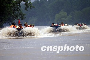 圖:安徽淮河分洪區沖鋒舟密切巡查水情